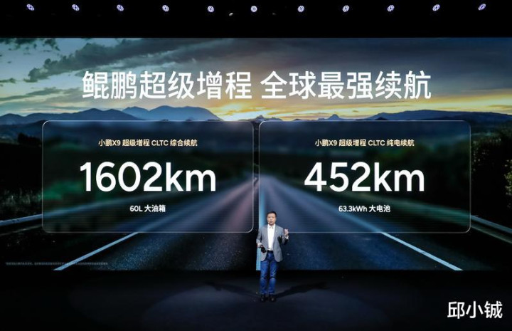 作为首款搭载鲲鹏超级增程技术的车型,小鹏X9超级增程堪称全球续航最长大七座的实力担当。它配备63.3kWh超快充磷酸铁锂大电池+60L大油箱,实现了CLTC纯电续航452km、CLTC综合续航1602km的领先水平。