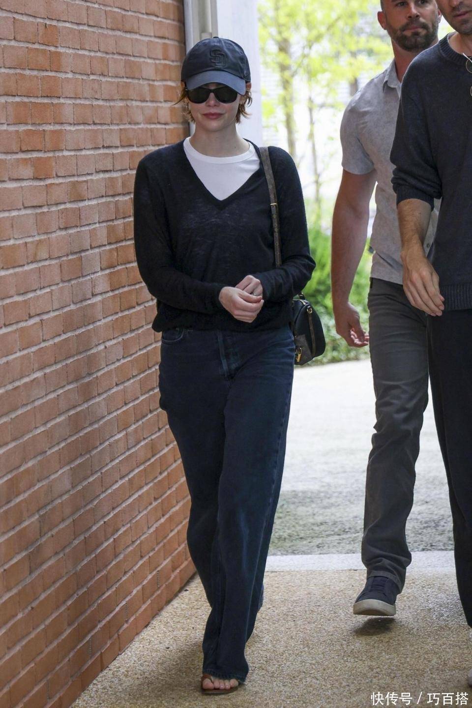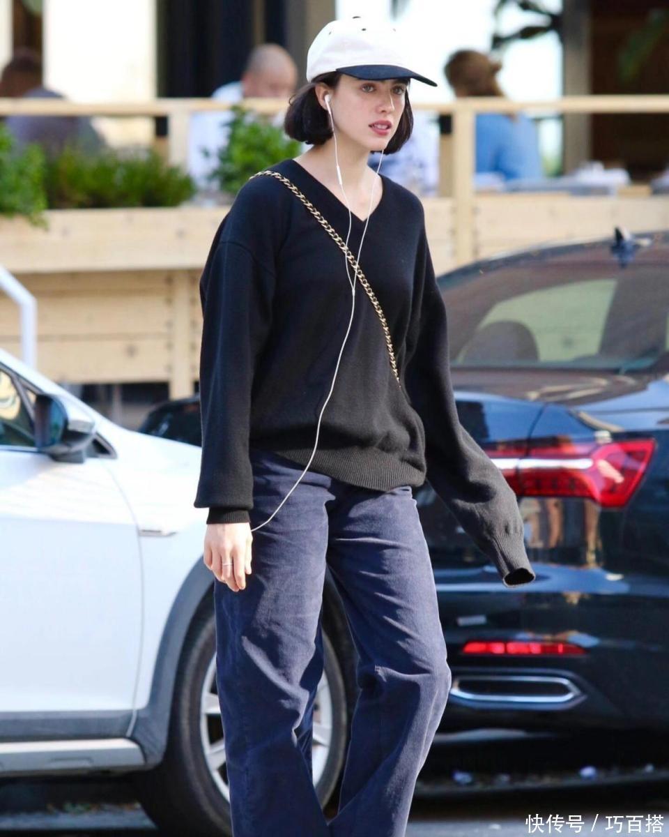 首先,选择黑色毛衣一定要保证它有一定的露肤性,正常情况下,优先选择圆领或小V领款式效果最佳,利用露脖颈和锁骨的款式减少单品上身的沉闷压抑,选择全黑look也不影响鲜活形象。