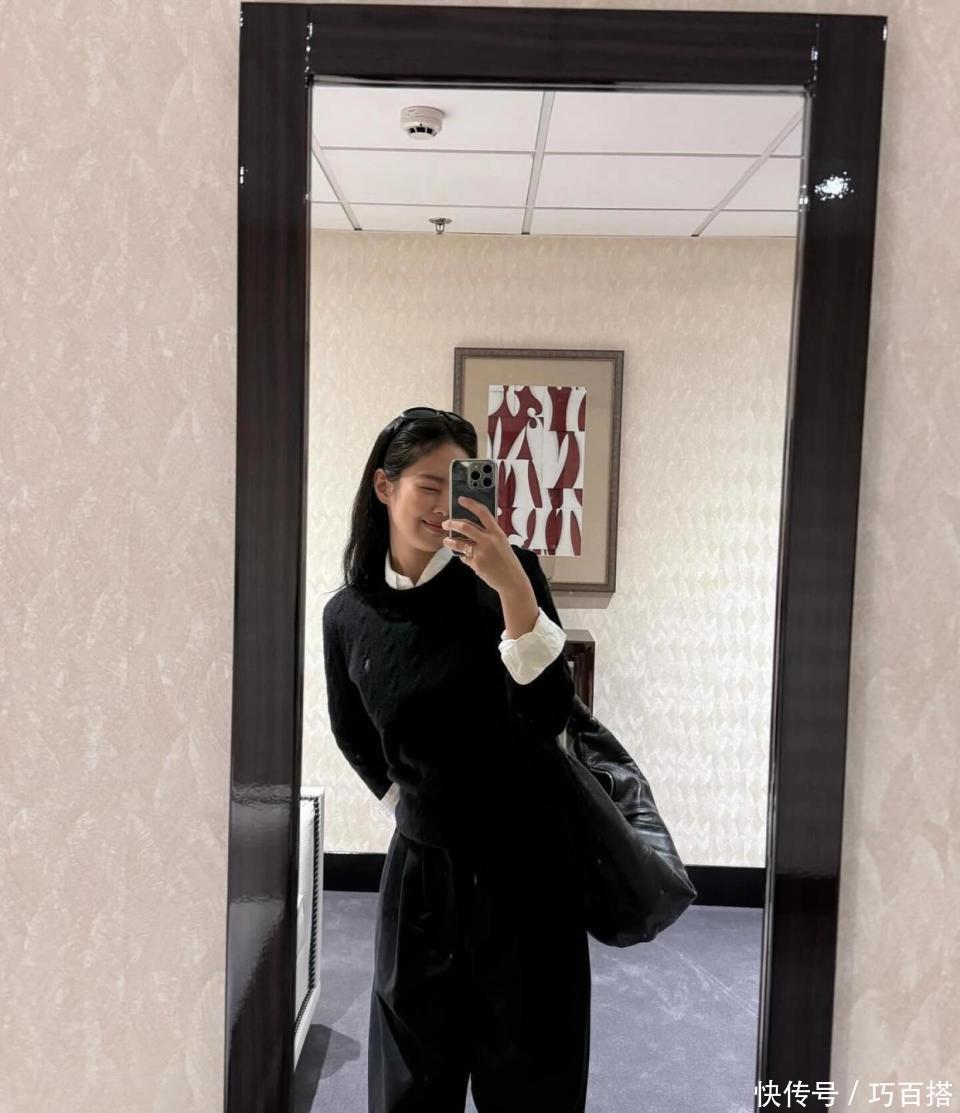 大家可以选择黑色圆领毛衣叠搭白色平翻领衬衫,乖巧基础,上班族学习借鉴不会踩雷,也可以选择常规圆领T恤叠搭黑色V领针织毛衣,干净利落,时髦耐看,约会逛街、日常出街都能穿出端庄得体的效果。