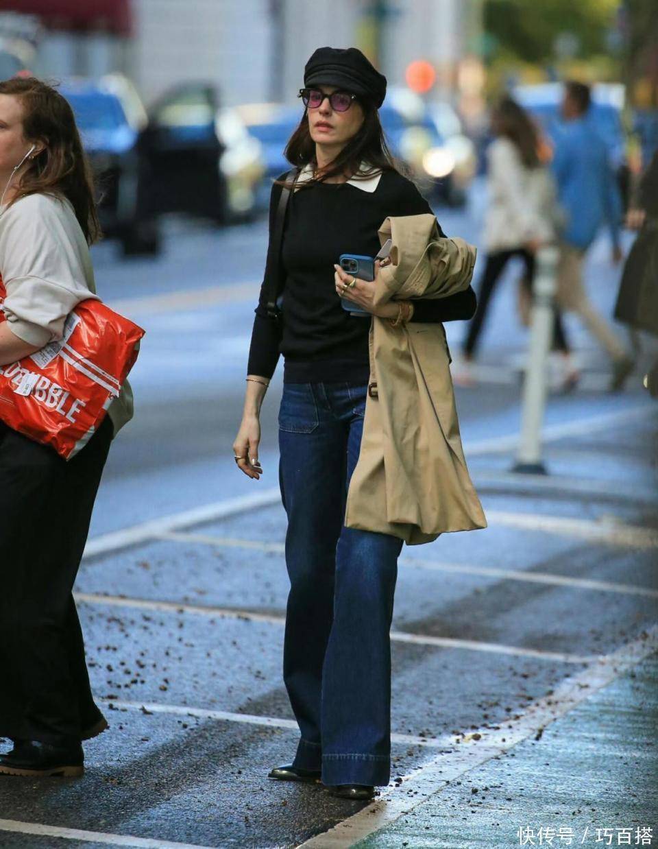 为了保证单品上身更有存在感,只要避开黑色毛衣+黑色牛仔裤的组合模式就万事大吉了,选择水洗蓝、浅蓝、深蓝、复古蓝等,都能与之搭配出层次丰富、经典耐看的造型。
